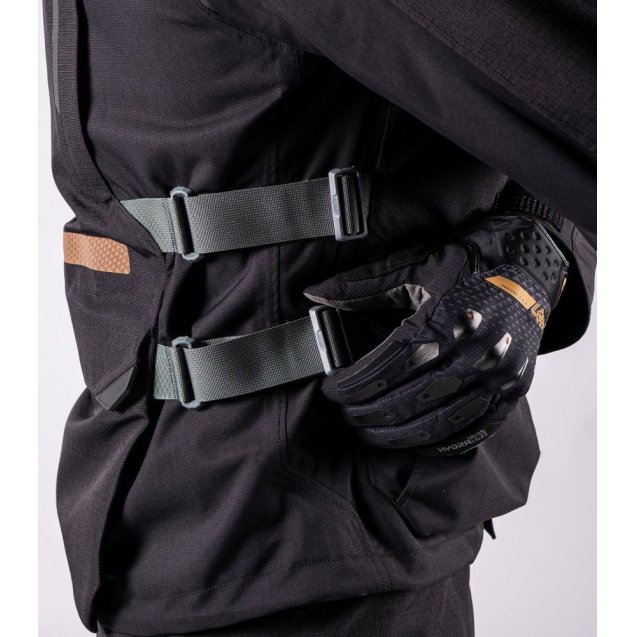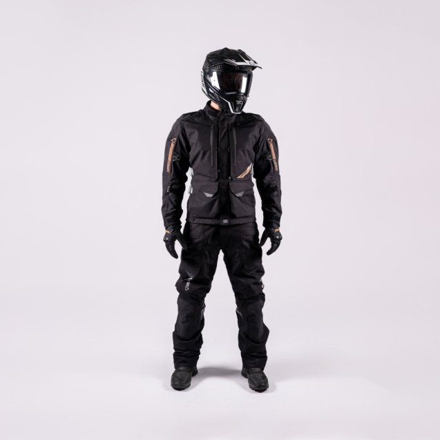 Мотокуртка ADV DriTour 5.5 — тришарова водонепроникна та дихаюча куртка для тривалих подорожей із ламінованим рипстопом Leatt 600d та мембраною HydraDri EVO (20 000 мм / 20 000 г/м²) і повністю проклеєними швами. Сертифікована за стандартом EN 17092-3-2020, клас AA. Захист спини EN1621-2 рівень 2, ліктів та плечей EN1621-1 рівень 2, передбачено місце для нагрудного протектора EN1621-3 рівень 2. Посилення Deflexion у критичних зонах. Знімна термо-куртка-вкладиш носиться окремо як повсякденна куртка. Вентиляційні блискавки на верхній частині рукава, грудях та спині дозволяють адаптуватися до зміни погоди. Грудні вентиляційні блискавки подвоюються як кишені. Зовнішня оболонка: нагрудна кишеня за передньою блискавкою, кишені для рук із флісовою підкладкою, водонепроникні кишені з клапанами та велика задня кишеня на блискавці. Термовкладиш: дві кишені для рук та сітчаста кишеня на блискавці. М'який неопреновий комір, покриття DWR C0 без PFC.