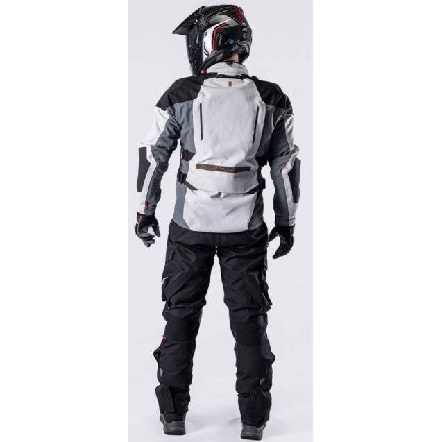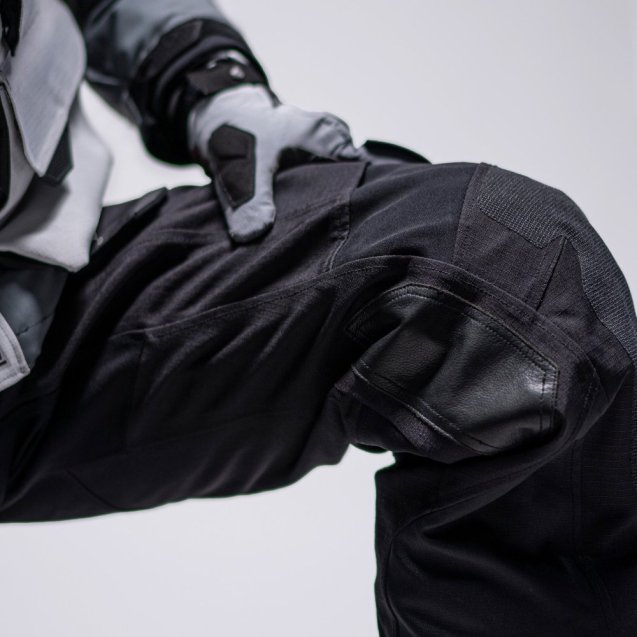 Мотоштани DriTour 5.5 — водонепроникні штани для їзди в дощову погоду з ламінованим матеріалом HydraDri EVO (20 000 мм / 20 000 г/м²) без зайвого об'єму. Сертифіковані за стандартом EN 17092-3-2020, клас AA. Захист колін EN1621-1 рівень 2 та стегон EN1621-1 рівень 2 включені в комплект. Знімний термовкладиш адаптує штани до холодної погоди. Пряма ламінація рипстопу Leatt забезпечує водонепроникність без втрати еластичності. Вирізи в підколінній зоні зменшують об'єм. Шкіра на внутрішній частині колін підвищує зчеплення та зносостійкість. Посилення Superfabric у зонах підвищеного зносу. Термостійкі панелі на нижній частині обох ніг. Великі водонепроникні кишені з магнітними застібками та блискавками, кишені для рук. Вентиляційні блискавки ззаду на ногах.